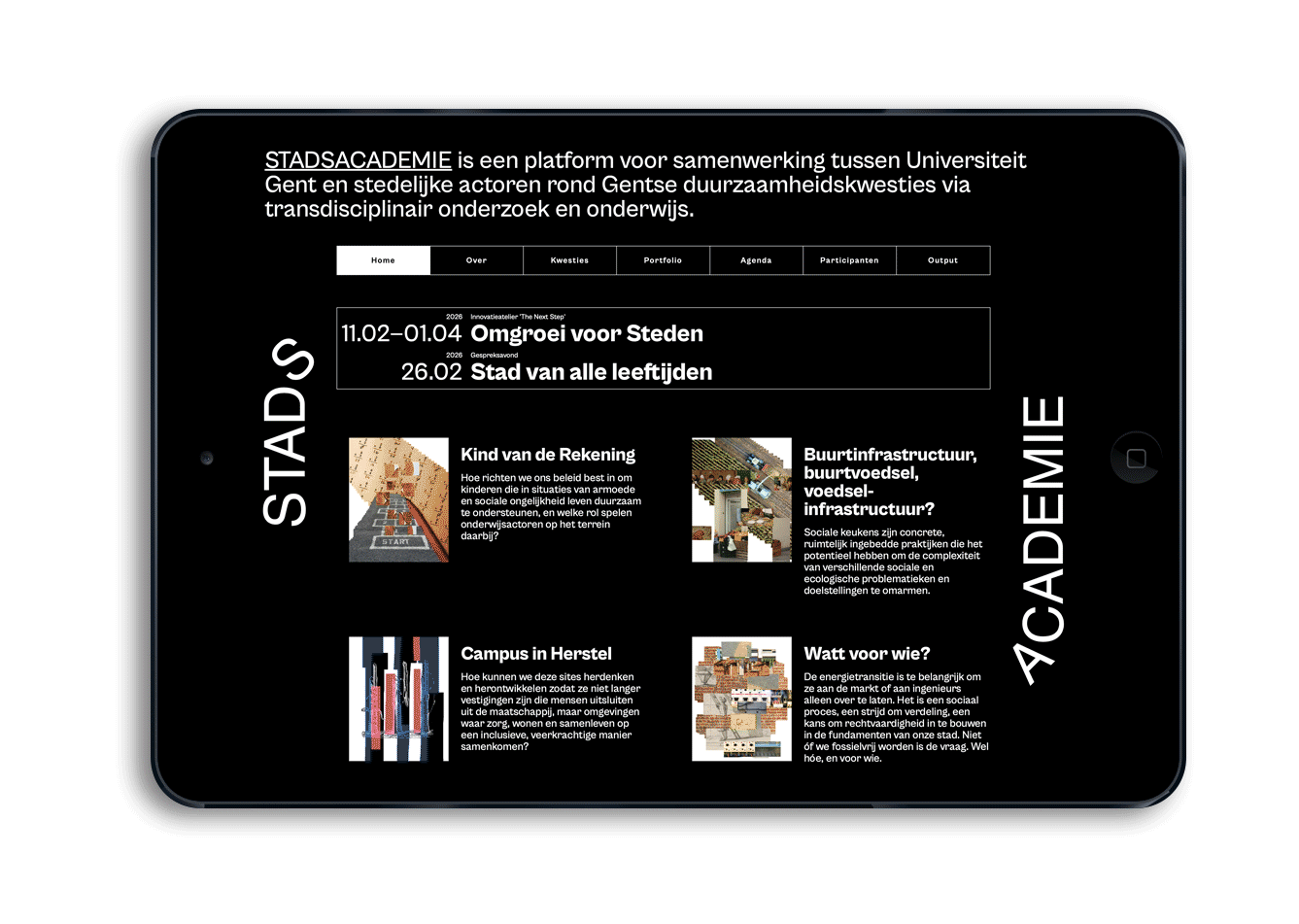 “stadsacademie.be” is een platform voor samenwerking tussen Universiteit Gent en stedelijke actoren rond Gentse duurzaamheidskwesties via transdisciplinair onderzoek en onderwijs.